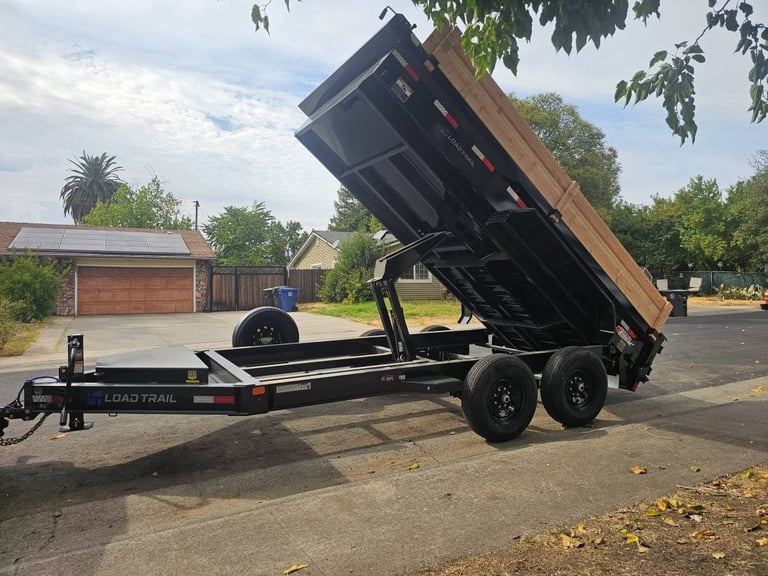 Our dump trailer is a versatile piece of equipment designed to haul and unload heavy materials quickly and efficiently. Regularly used in construction, landscaping, and agriculture, it features a hydraulic lift system that tilts the trailer bed, allowing contents to be dumped out with minimal manual effort. Contractors rely on dump trailers to transport gravel, sand, demolition debris, and tools, while homeowners and landscapers often use them for hauling soil, yard waste, or home cleanup